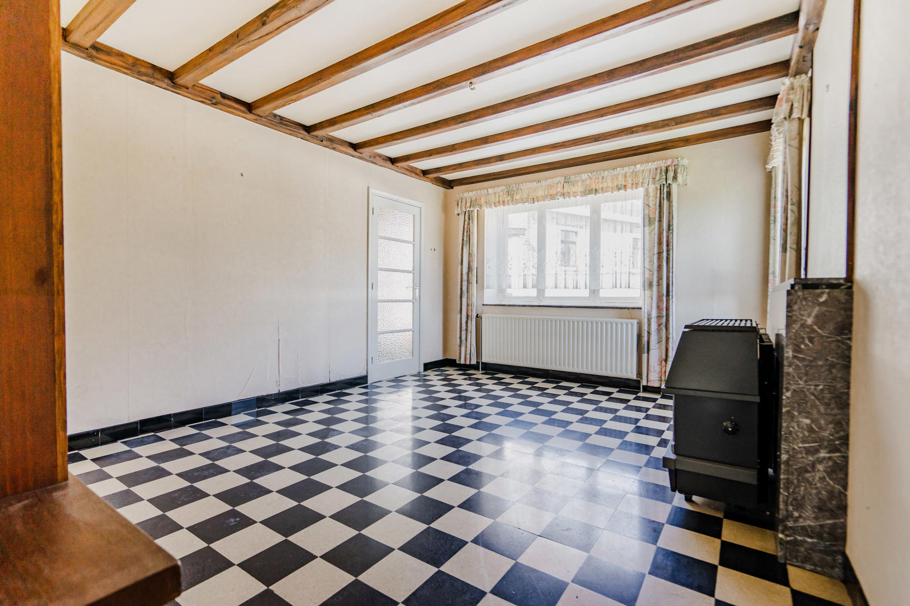 Chauffage central et production d’eau chaude par chaudière mazout Viessmann de 22kw (1999) – citerne de moins de 3.000L, châssis bois simple vitrage (avec volets), électricité non conforme.
