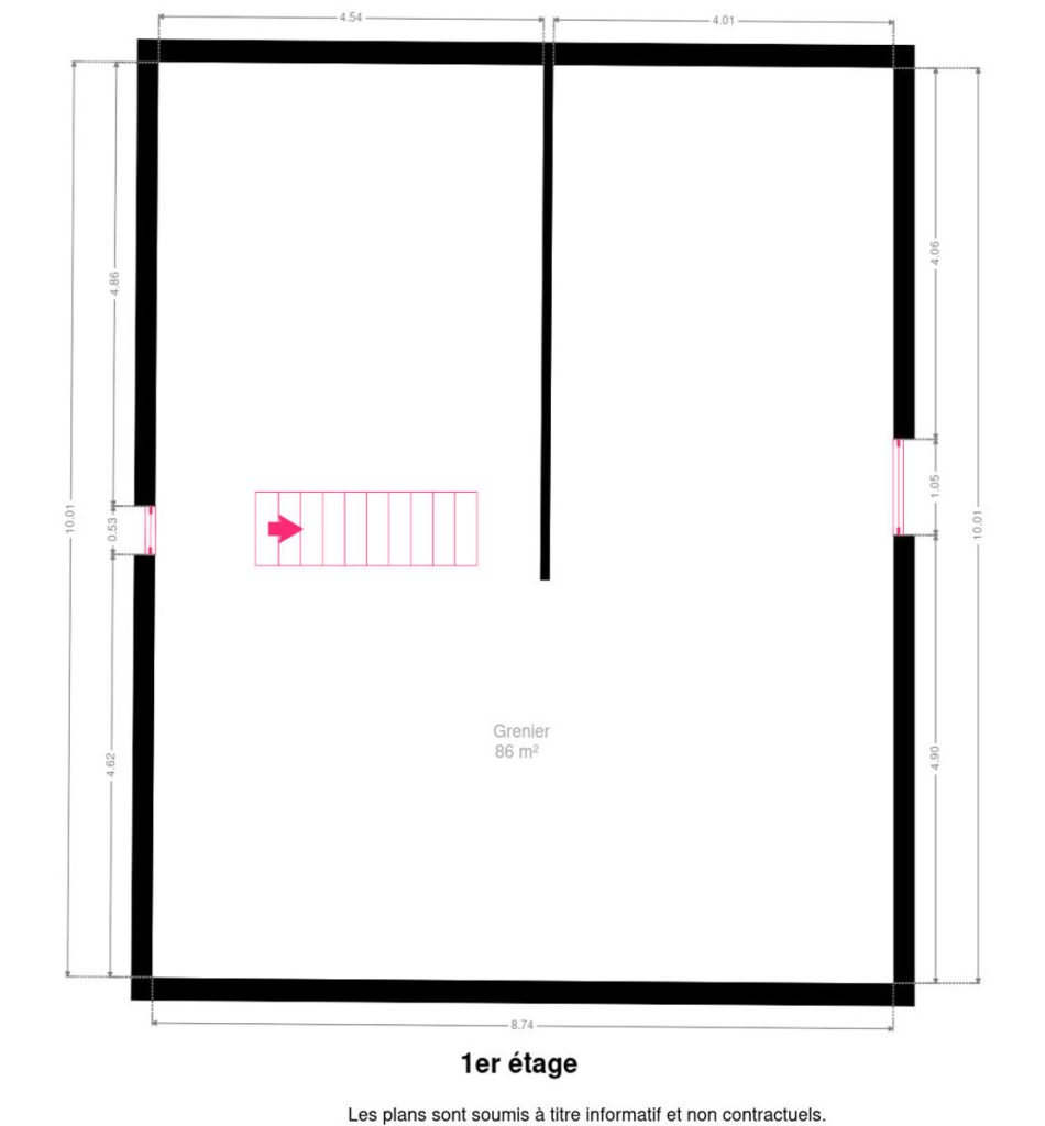 1er; vaste grenier aménageable accessible par escalier.